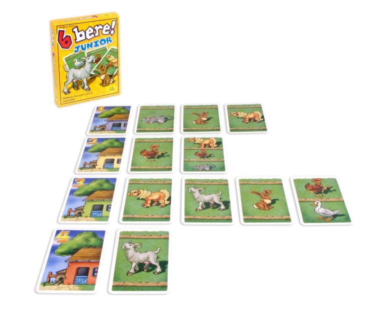 Hra 6 bere! Junior je určená již pro děti od pěti let. Hráči se snaží nasbírat šest rozdílných zvířat do jedné stáje. Komu se to povede, ten si bere všechny karty zvířat, které ve stáji jsou. Vítězí hráč, který má na konci hry nejvíce karet.