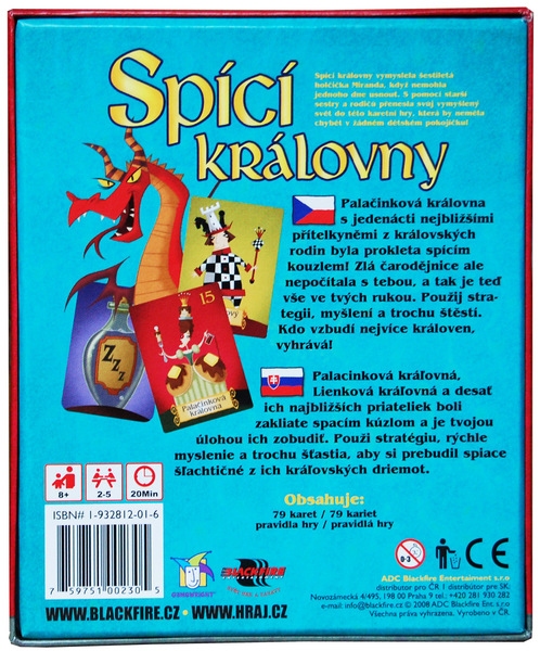 Spící královny vymyslela šestiletá holčička Miranda, když nemohla usnout. S pomocí starší sestry a rodičů přenesla svůj vymyšlený svět do této karetní hry, která by neměla chybět v žádném dětském pokojíčku.